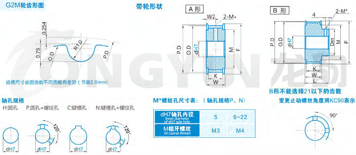 規格 形狀 節徑P.D 外徑O.D 擋邊外徑F 擋邊內徑M 輪轂直徑Dm 內孔dH7