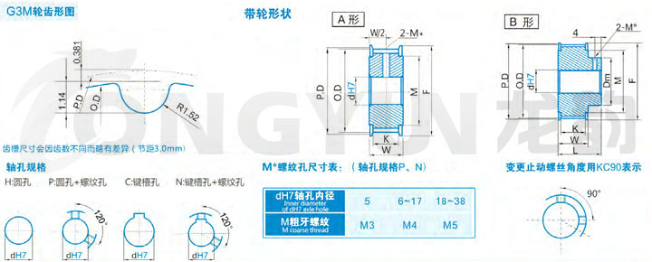 規格 形狀 節徑P.D 外徑O.D 擋邊外徑F 擋邊內徑M 輪轂直徑Dm 內孔dH7