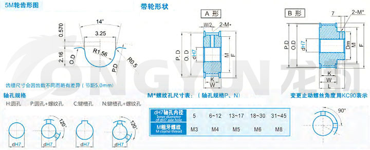 | 規格 | 形狀 | 節徑P.D | 外徑O.D | 擋邊外徑F | 擋邊內徑M | 輪轂直徑Dm | 內孔dH7 | |||||