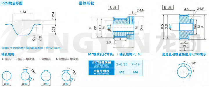 | 規格 | 形狀 | 節徑P.D | 外徑O.D | 擋邊外徑F | 擋邊內徑M | 輪轂直徑Dm | 內孔dH7 | ||||
