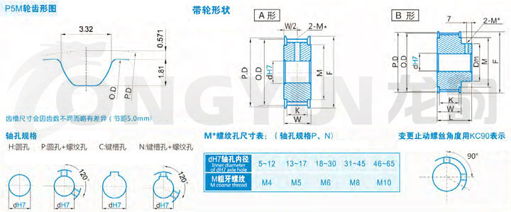 | 規格 | 形狀 | 節徑P.D | 外徑O.D | 擋邊外徑F | 擋邊內徑M | 輪轂直徑Dm | 內孔dH7 | ||||