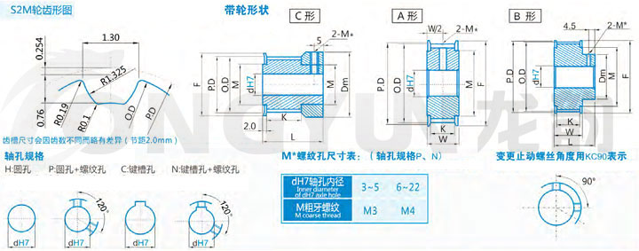規格 形狀 節徑P.D 外徑O.D 擋邊外徑F 擋邊內徑M 輪轂直徑Dm 內孔dH7