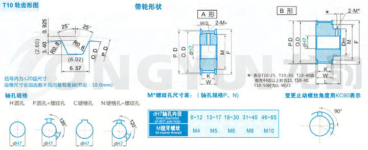 | 規格 | 形狀 | 節徑P.D | 外徑O.D | 擋邊外徑F | 擋邊內徑M | 輪轂直徑Dm | 內孔dH7 | |||||